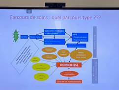 🔍 Présentation de la Dre Claire Jourdan et de Catherine Franconie, du projet OptimiPS-TC, sur plusieurs questionnements en lien avec le parcours de soins des personnes ayant eu un TC. Quelques éléments de réponse, avec la Clinique des Cérébrolésés au CHU de Montpellier, la mise en place d’un parcours systématisé en cours au CHU de Nîmes. Et beaucoup de questions et enjeux, complexité du parcours et risque des perdus de vue, multiplicité des besoins, grand nombre de patients à suivre…