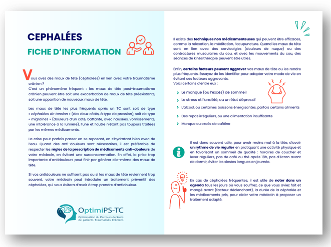 Fiche à destination des personnes adultes présentant des céphalées dans les suite d’un traumatisme crânien