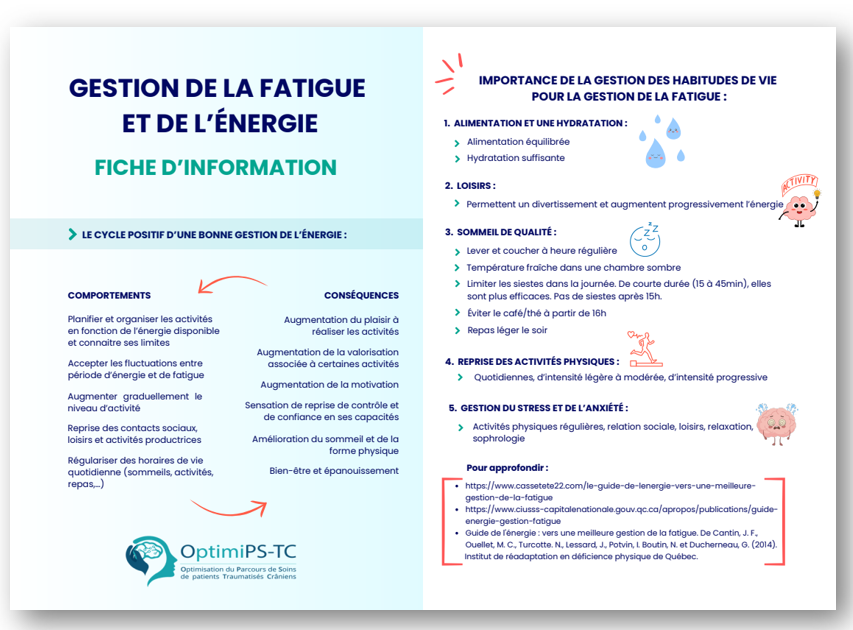 Fiche à destination des personnes adultes présentant une fatigue et un manque d’énergie dans les suite d’un traumatisme crânien