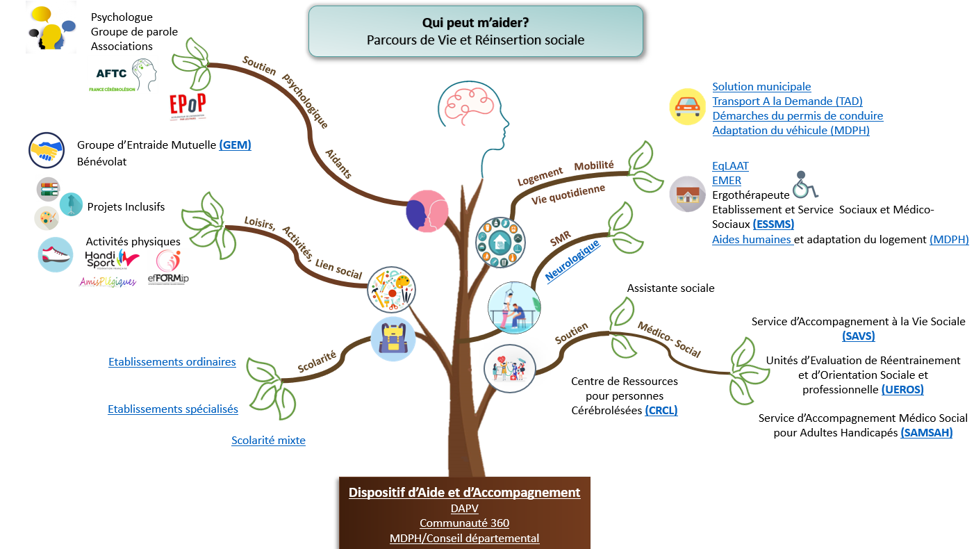 Le traumatisme crânien peut avoir des répercussions durables sur différents aspects de la vie quotidienne. Selon la situation, des accompagnements spécifiques peuvent être mobilisés pour favoriser l’organisation, l’autonomie et l’intégration sociale de la personne. Cette diversité de besoins rend parfois nécessaire le recours à des dispositifs d’appui afin d’éviter les ruptures et de soutenir la construction d’un parcours de vie adapté. Pour répondre à ces enjeux, plusieurs dispositifs peuvent être sollicités :